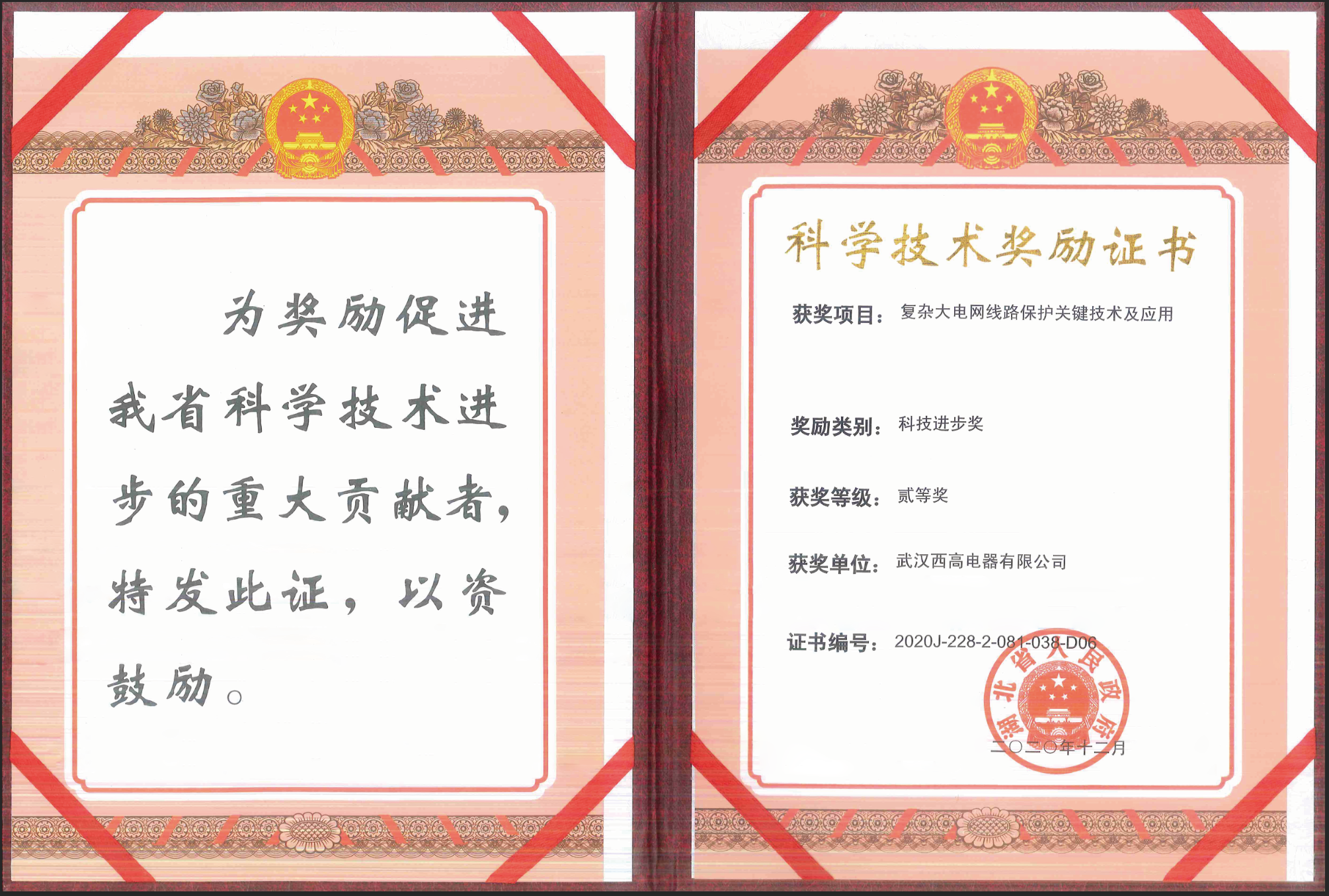 喜報(bào)| 西高電器榮獲2020年度湖北省科技進(jìn)步二等獎(jiǎng)